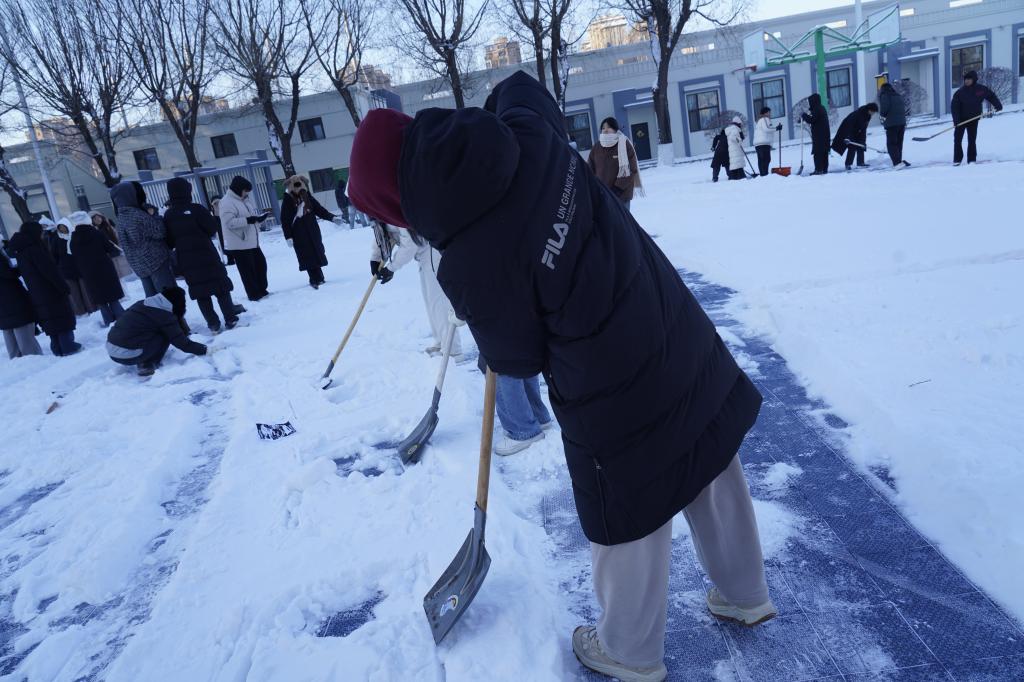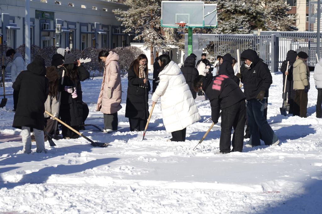 为激发青年学子爱国爱乡情怀,体悟吉林大地的历史底蕴与时代活力,长春光华学院艺术设计学院于2025年12月24日,以“青春远志 吉地风华”为主题,在校园北区篮球场开展雪地绘图活动。师生们以雪为纸、以锹为笔,将冰雪艺术与家乡情怀相融,通过巨型雪地画作礼赞吉林地标,彰显当代青年扎根故土、助力振兴的担当。