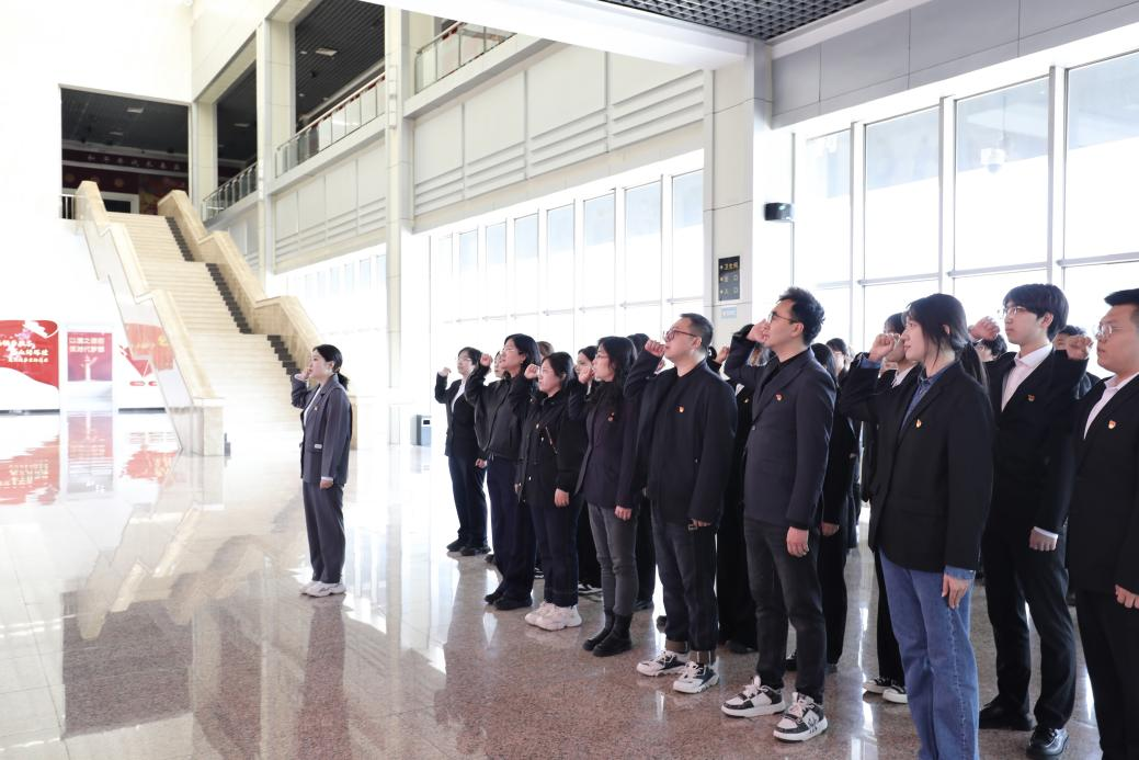 随后,在学生第一党支部书记程琳的带领下,党员师生重温入党誓词。誓言铿锵有力,响彻陵园,展现出新时代青年学子的责任担当。宣誓结束,同学们在工作人员引导下参观烈士纪念馆。馆内陈列的大量珍贵文物、图片及文献资料,生动展现了革命先烈为民族独立和人民解放抛头颅、洒热血的英勇事迹。