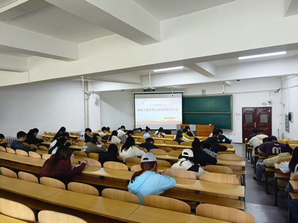 为深入学习贯彻习近平新时代中国特色社会主义思想,切实提高入党积极分子思想觉悟和政治素养,2025年5月11日下午13点10分,机械工程学院党总支于二教212组织开展入党积极分子培训班结业考试,全体学员参加。本次结业考试采取闭卷方式,围绕党的相关理论知识进行考察,旨在提高我院入党积极分子的政治觉悟,树立正确的人生观、世界观和价值观。在考试过程中,学员们都以认真、负责的态度对待考试,营造出自律、诚信的考试氛围,每个人都专注于自己的答卷,展现出了良好的学习态度和扎实的理论功底。通过此次考试,不仅进一步加深了大家对党的理论和历史的认识和理解,更为今后在学习和生活中更好地发挥先锋模范作用,为实现中华民族伟大复兴的中国梦贡献力量奠定了坚实的基础。(供稿:机械工程学院 初审:康爽 复审:赵闯 终审:杨鸿)