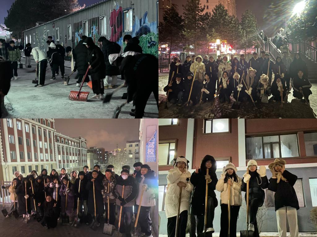 为积极引导同学们投身劳动实践,树立以劳动铸就品德、以劳动砥砺志向、以劳动培育美感的正确劳动价值观念,2024年11月18日,电气信息学院开展扫雪除冰志愿服务活动,2024级全体学生参加。尽管寒风凛冽,雪花纷飞,但同学们的热情却丝毫未减,同学们在扫雪过程中相互鼓励,用实际行动诠释着责任与担当,为校园的整洁与安全贡献着自己的力量。此次活动,不仅彰显了同学们团结协作的良好精神面貌,而且也让同学们在亲身实践中深刻体会到了劳动的价值与深远意义,真正将尊重劳动、热爱劳动、积极投身劳动的精神内化于心,外化于行。