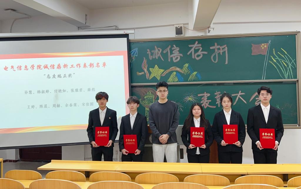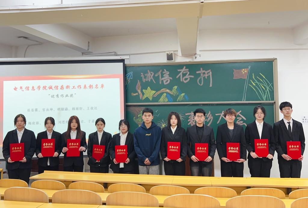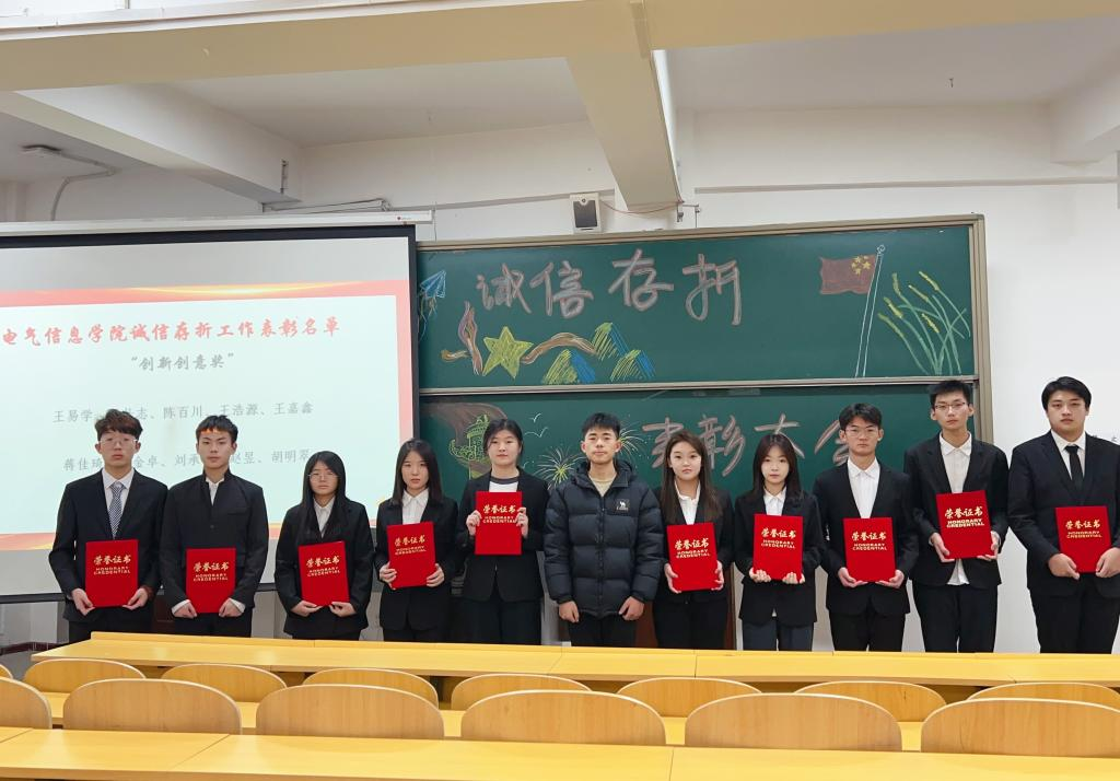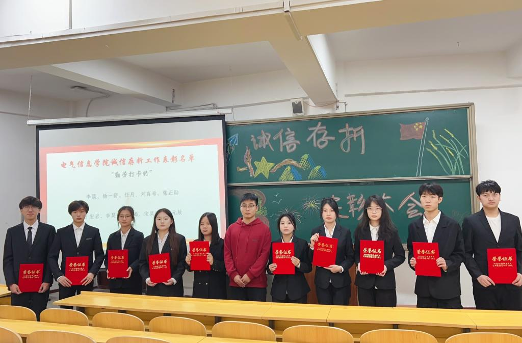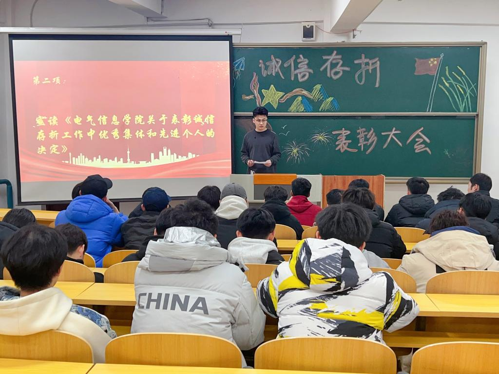 为进一步促进同学们养成良好的行为习惯,增强同学们的诚信意识,发挥典型引领和榜样示范作用,2024年12月19日,电气信息学院于二教318召开2024年度“诚信存折”活动表彰大会。电气信息学院团总支书记曲相日出席本次大会,获奖代表和部分学生参加。