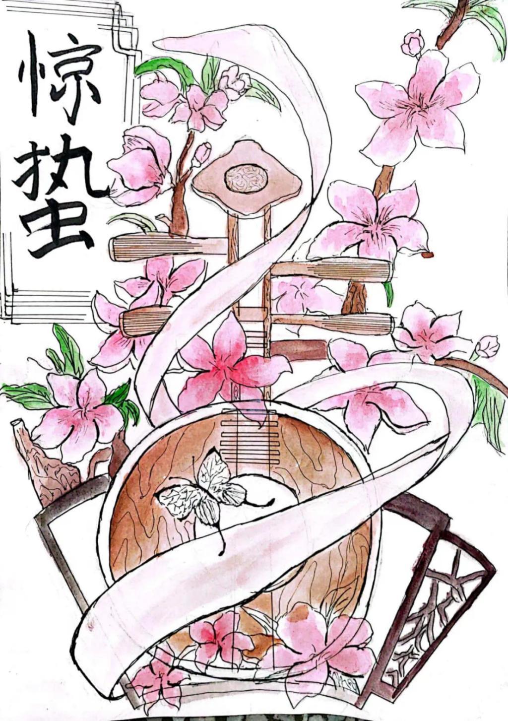 一鼓轻雷惊蛰后,细筛微雨落梅天,临流欲渡还休笑,送客归来始惘然。冬季未了,春季已始。这富有诗情画意的节气源于先人们对于春季的观察和认识。所谓“春雷惊百虫”,是指惊蛰k时节,春雷始鸣,惊醒蛰伏于地下越冬的蛰虫。象征着春季的到来。我院为弘扬中国传统文化,促进学生们对二十四节气的认知度。让同学们自己创作,从交织的丰富色彩中找到春季的宁静与繁花似锦,加强对传统文化的传播弘扬与传承以及学生对中国传统节日的参与感,推动我院学风建设,推动养成教育活动的开展,艺术设计学院启航养成教育协会于2024年3月5日开展了养成教育图说中国节——惊蛰主题绘画活动。