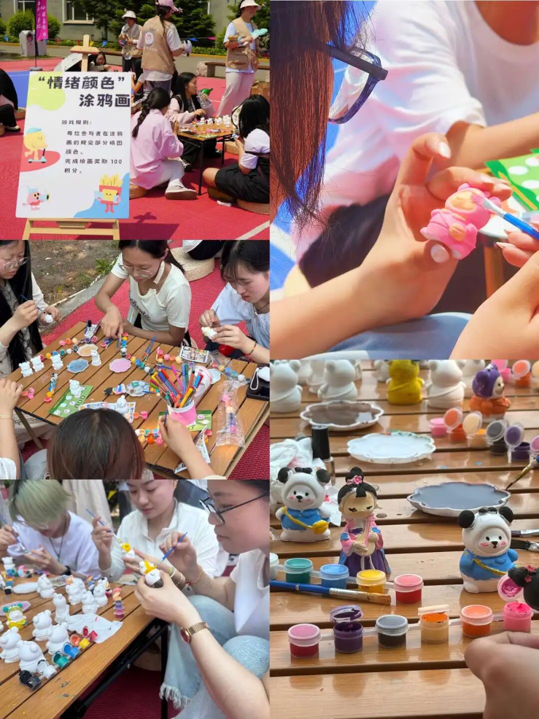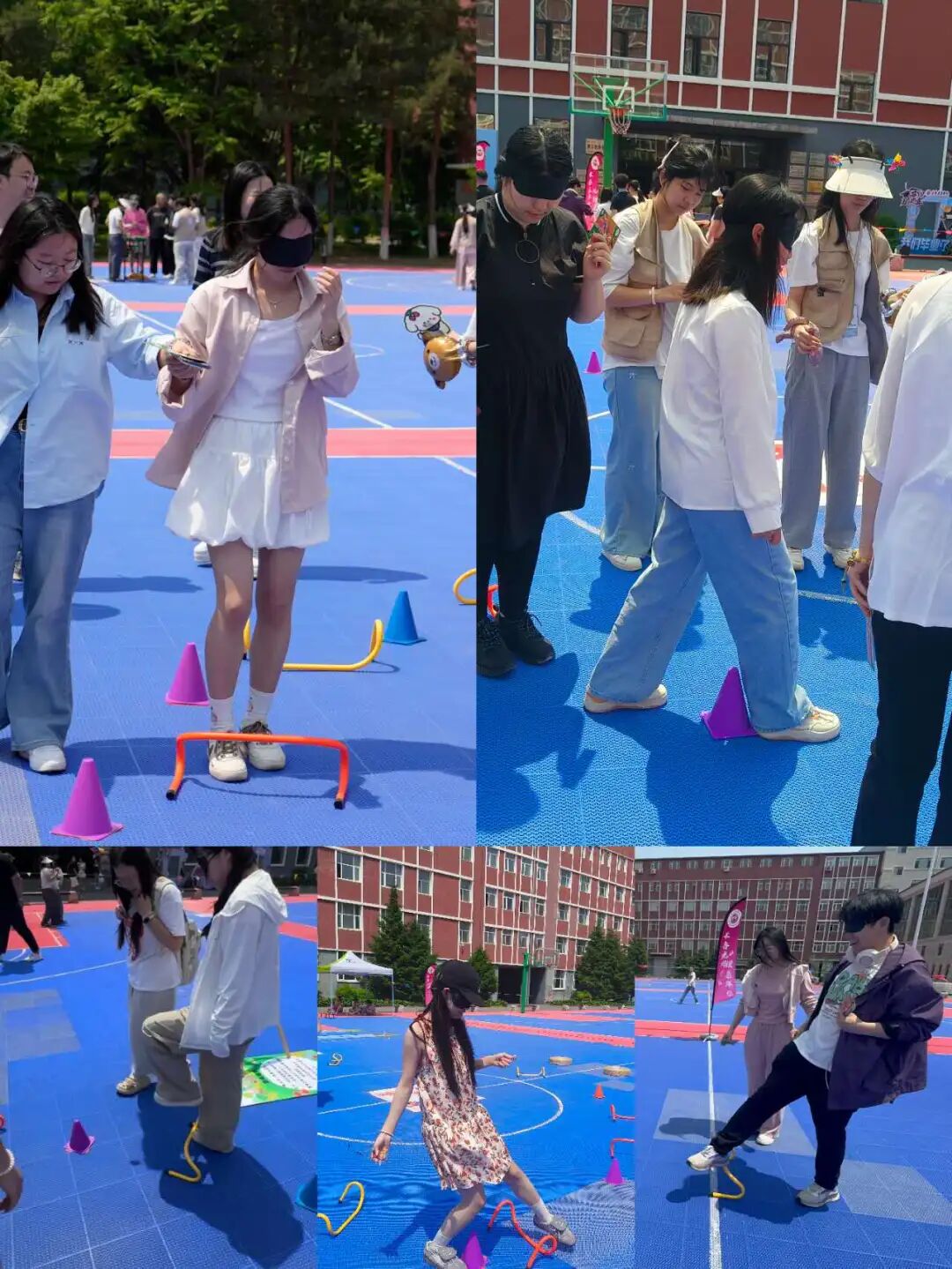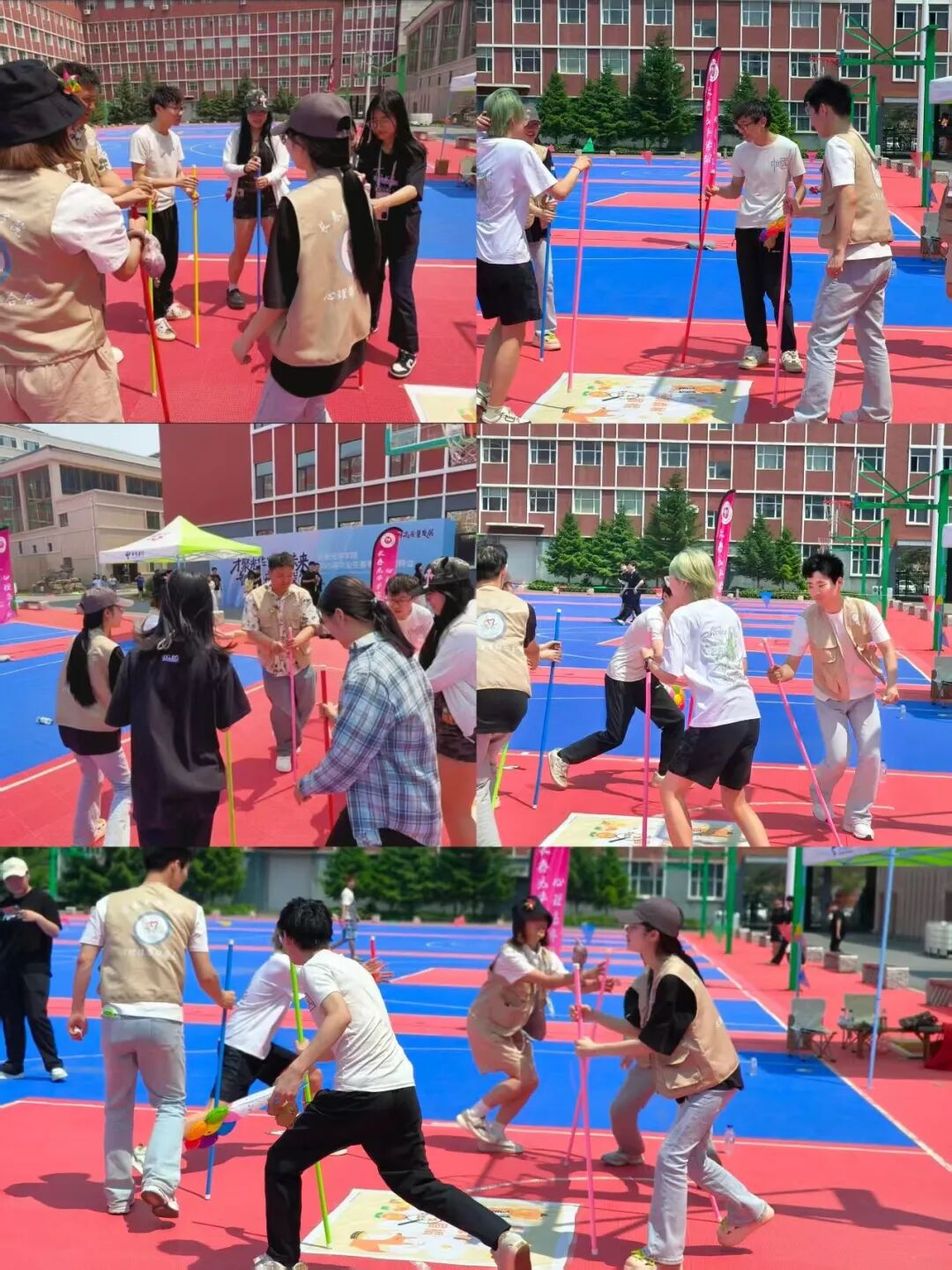 在"手脚并用"跳房子区,同学们灵活跳跃的身影宛如跃动的音符;"寝室团结"接力赛中,室友们默契配合,传递着温暖与信任;"不倒森林"齐眉棍游戏里,团队协作的力量让每一根木棍都稳稳挺立,展现出集体的智慧;"消灭烦恼"一杆清和"手疾眼快"手抓棒前,挑战者们全神贯注,每一次成功都赢得阵阵喝彩;"情绪颜色"涂鸦墙上,五彩斑斓的创意画作诉说着青春的无限可能;"信任之旅"蒙眼挑战中,搭档们用温暖的话语指引方向,"向左一步""放心向前"的鼓励让信任之花美丽绽放。自由K歌角环节更是将气氛推向高潮,一首首充满正能量的歌曲在校园回荡,青春的歌声传递着希望与梦想。