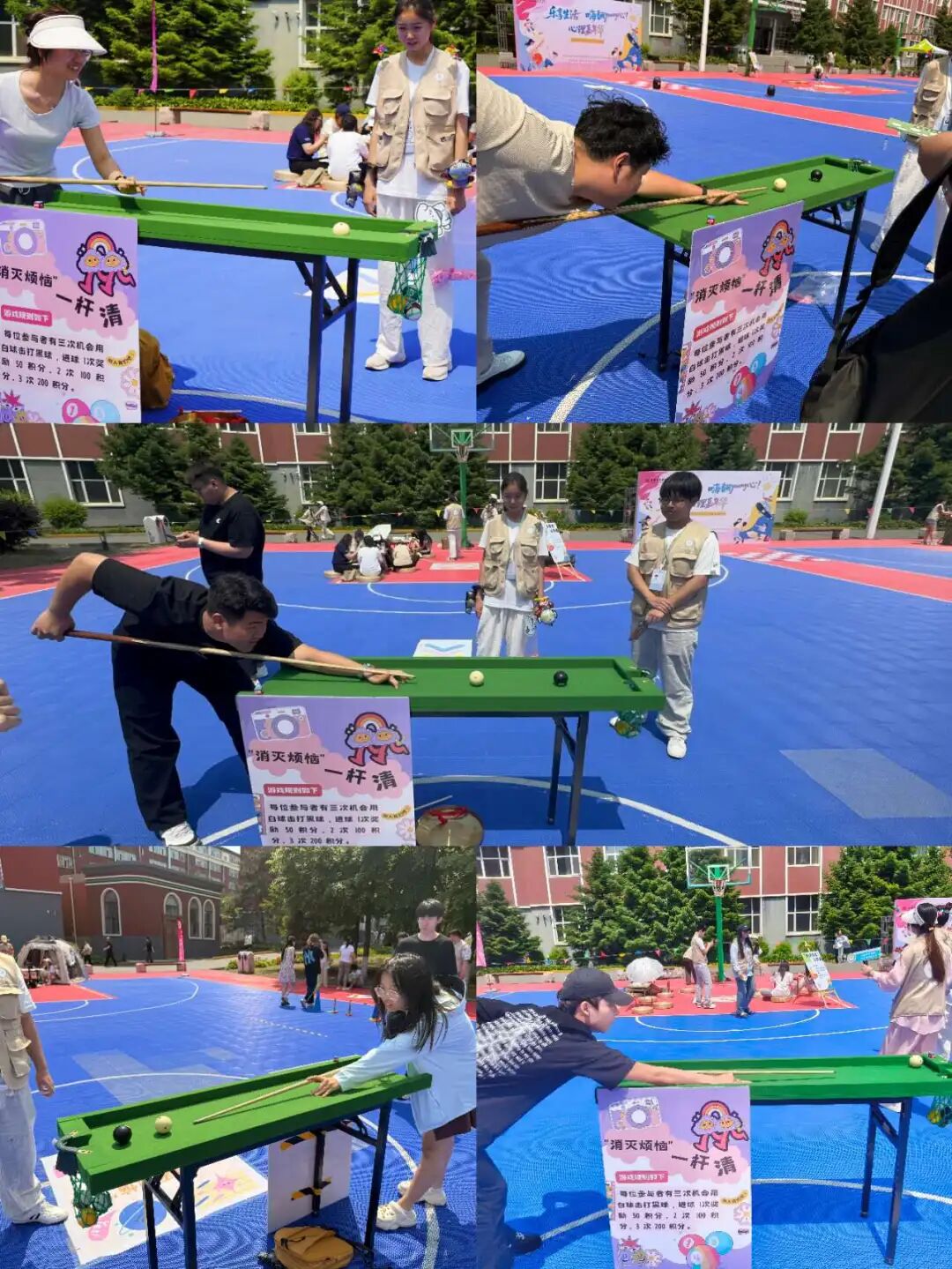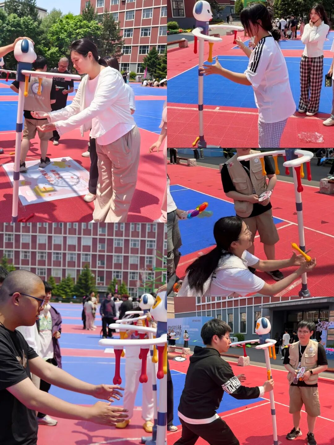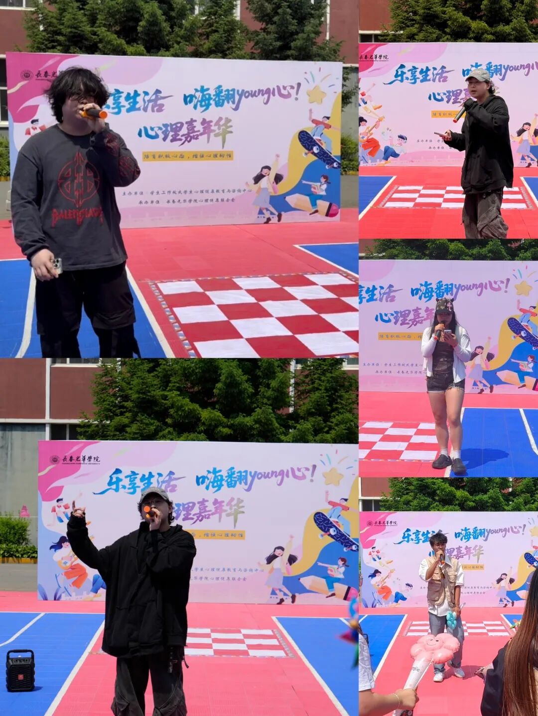 在"手脚并用"跳房子区,同学们灵活跳跃的身影宛如跃动的音符;"寝室团结"接力赛中,室友们默契配合,传递着温暖与信任;"不倒森林"齐眉棍游戏里,团队协作的力量让每一根木棍都稳稳挺立,展现出集体的智慧;"消灭烦恼"一杆清和"手疾眼快"手抓棒前,挑战者们全神贯注,每一次成功都赢得阵阵喝彩;"情绪颜色"涂鸦墙上,五彩斑斓的创意画作诉说着青春的无限可能;"信任之旅"蒙眼挑战中,搭档们用温暖的话语指引方向,"向左一步""放心向前"的鼓励让信任之花美丽绽放。自由K歌角环节更是将气氛推向高潮,一首首充满正能量的歌曲在校园回荡,青春的歌声传递着希望与梦想。
