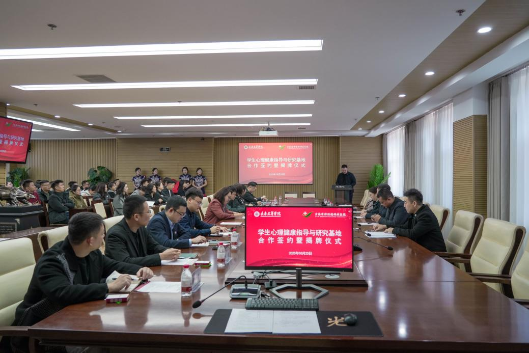 为深入贯彻落实《吉林省推进高校心理健康医校联动工作方案》文件精神,构建学校与专业医院协同联动的学生心理健康工作格局,10月23日下午,我校与吉林省神经精神病医院共建学生心理健康指导与研究基地签约暨揭牌仪式在第一会议室举行。