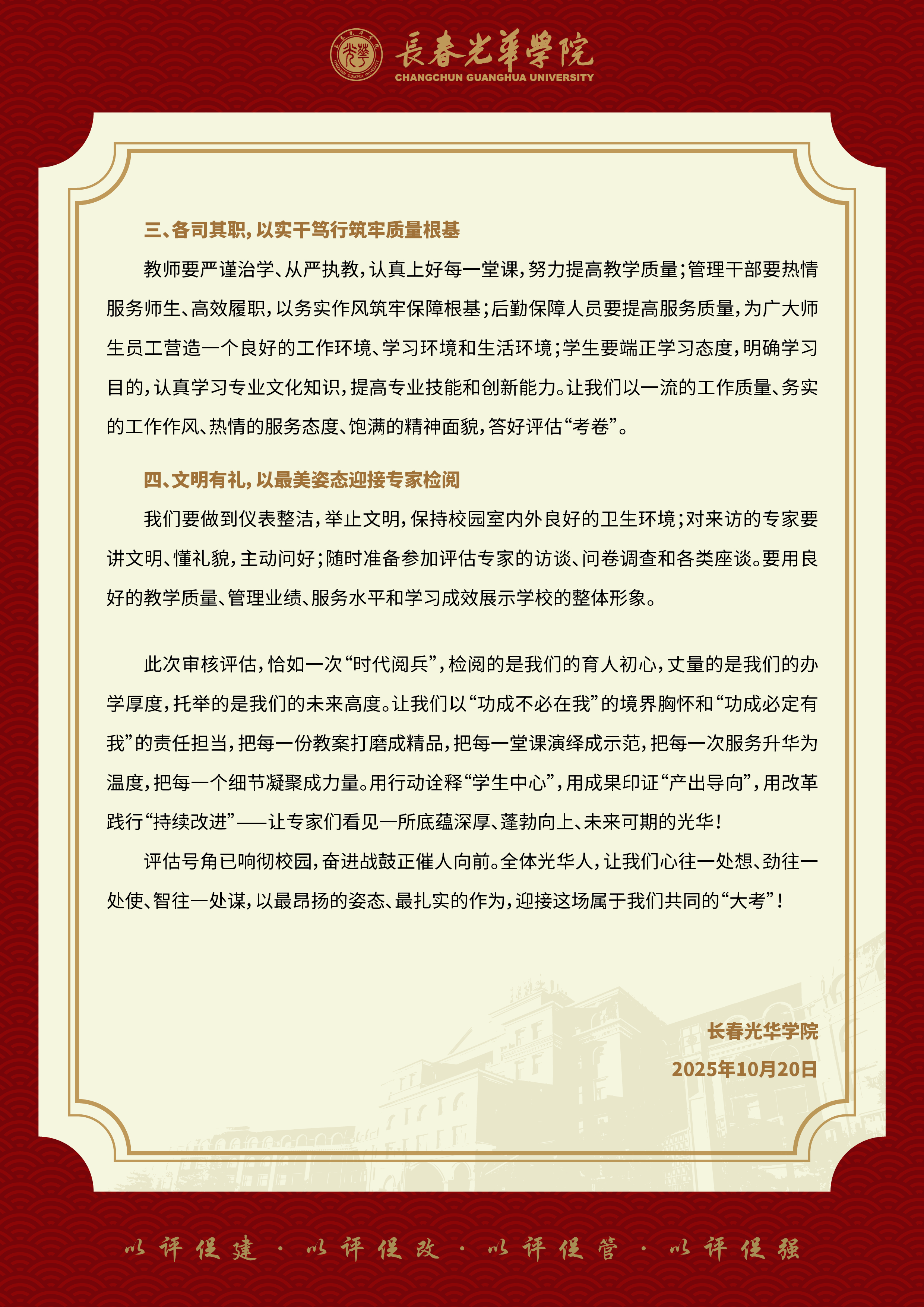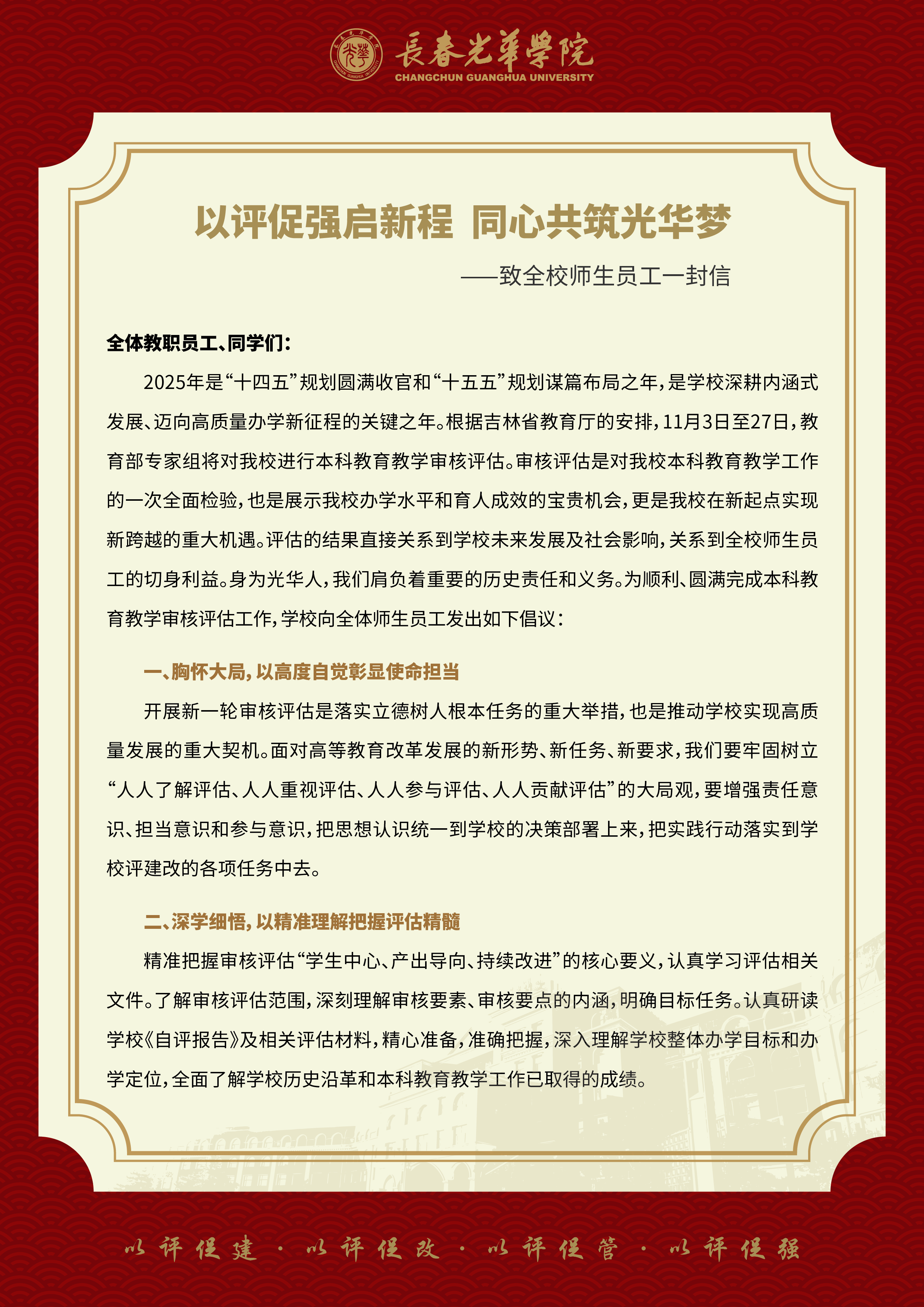 以评促强启新程 同心共筑光华梦——致全校师生员工一封信