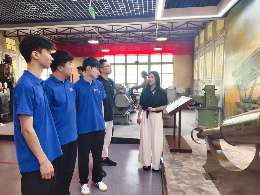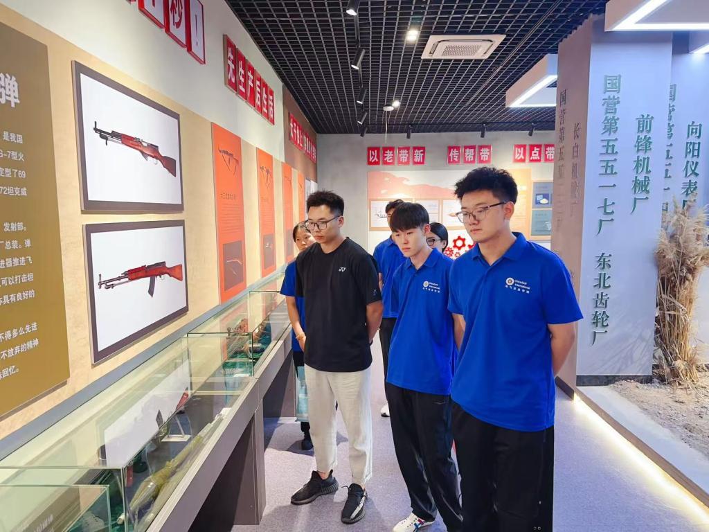 锈迹斑斑的旧机床、字迹模糊的老文献——通化市辉南县庆阳兵工博物馆里的每一件展品都是“砺剑深山”的见证。躬临其间,实践团成员们触摸着三线建设的脉搏,体悟着建设者自力更生、无私奉献的伟大精神。全体师生党员在党旗下庄严宣誓,重温入党誓词,用坚定的声音表达了传承兵工精神的决心。